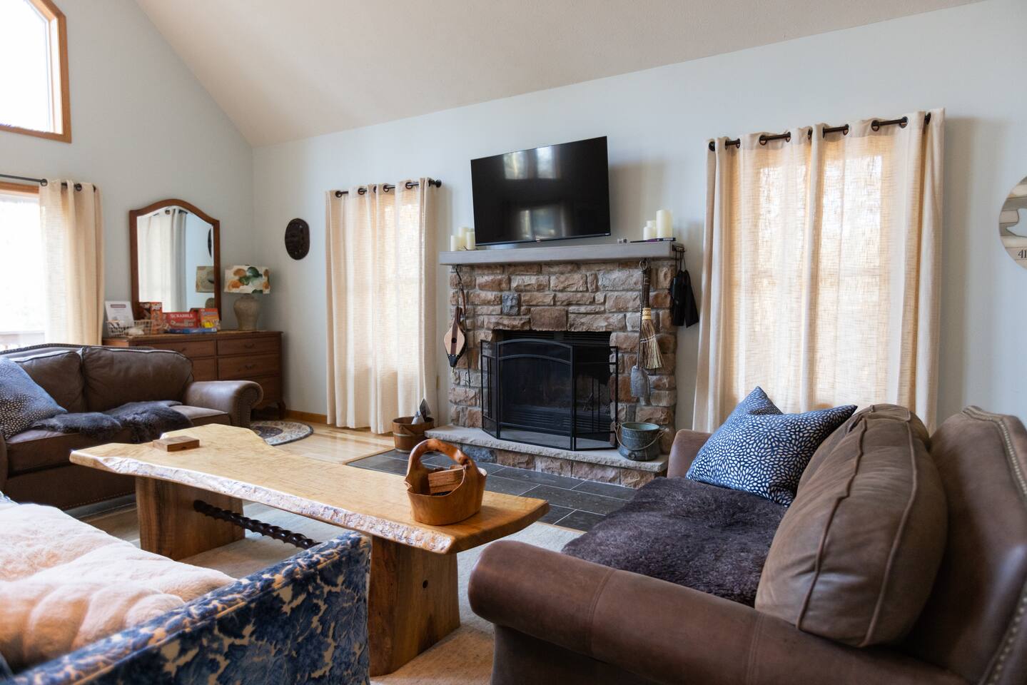 PACK YOUR BAGS and get ready for a fun family vacation! Boulder View Lodge Steps from Lake Harmony with hot tub, fire pit, and fireplace. 🛁 Soak in the private hot tub 🔥 Gather ’round the outdoor fire pit & cozy indoor fireplace 💻 Stay productive with fast Wi‑Fi & a dedicated workspace 🍽️ Cook in style in the fully equipped kitchen & laundry room Pet-friendly & perfect for families or group getaways. Book today!