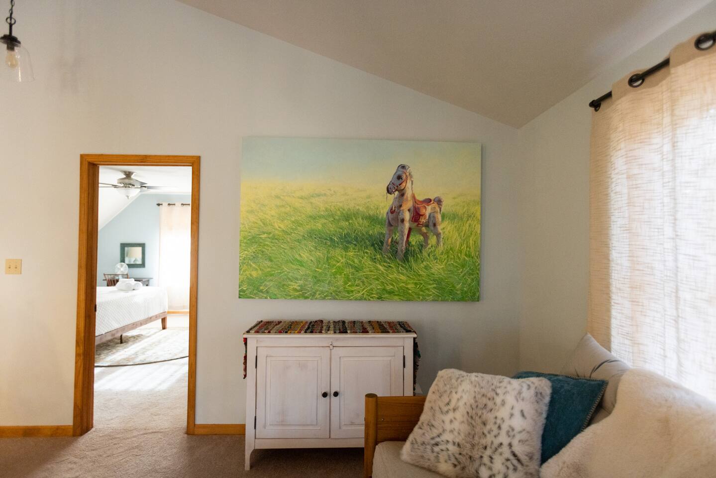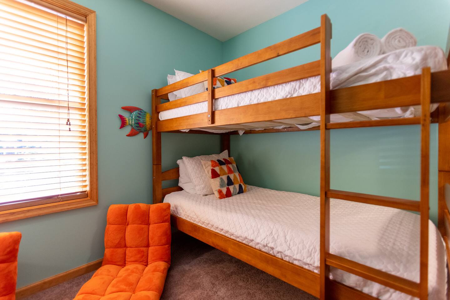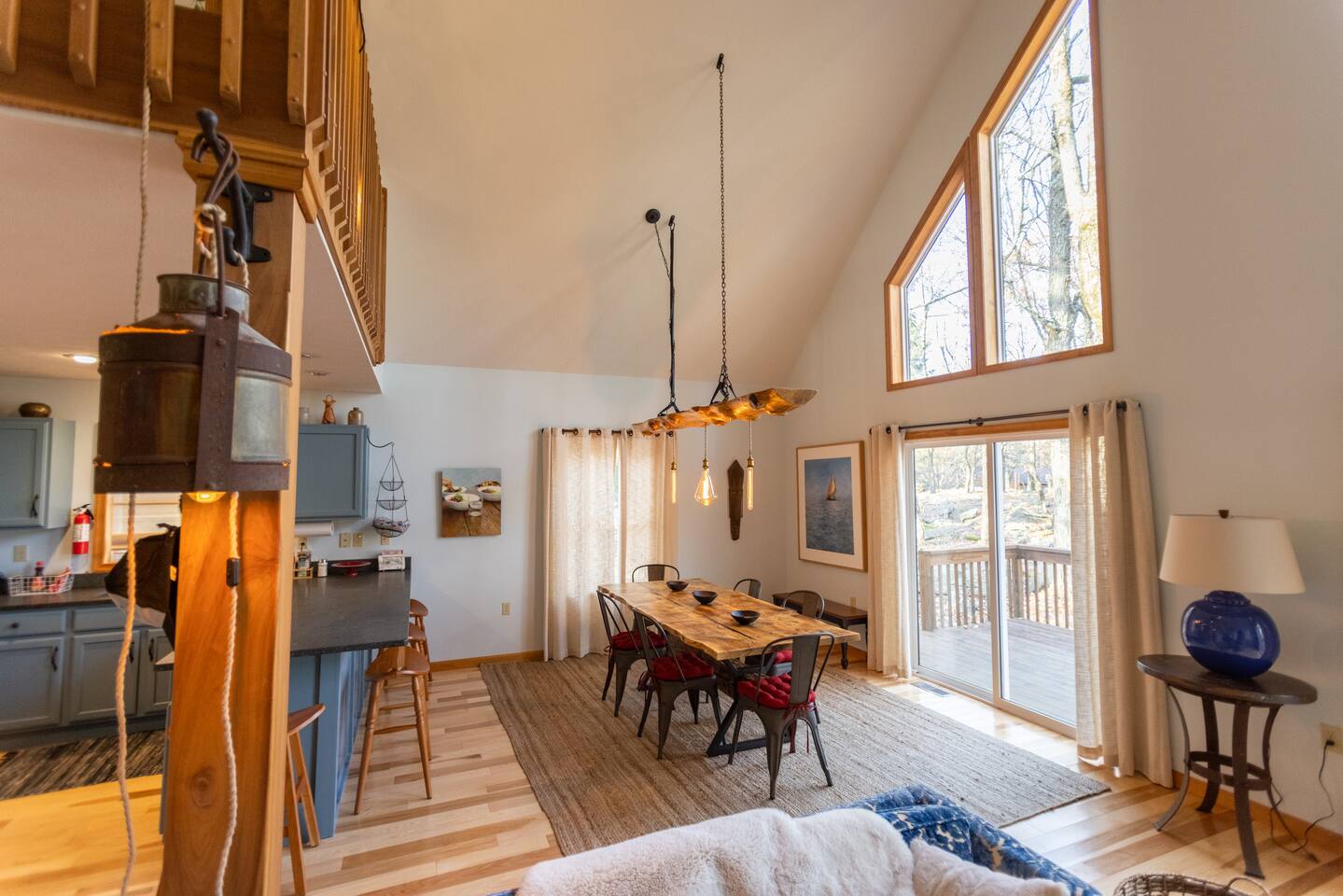 Cozy up by the wood burning fireplace with a cup filled with hot chocolate and marshmallows or sit in the Adirondack chairs and enjoy S’mores from the outdoor firepit – firewood available at the home! The lakeview, just a short hike from the back deck, will imprint a lasting memory. You will not want to leave! Soak in the hot tub, fit for 6-people hot tub with massage jets targeting specific muscle groups, providing the best massage experience. Gaze up at the stars in a rocking chair on the large wraparound deck. Walking through the home you will immerse yourself within a beautiful art gallery, all painted by a local artist. Prepare a wonderfully cooked meal in this NEWLY, full stocked kitchen with stainless steel appliances. Gather around the hand-crafted live edge wood table for a family feast. The kitchen and dining room comfortably fits 6 adults and 4 children. Everyone can then make their way up to the open loft to wind down, read a book or play a few board games. Do you like to grill? Great! We provide a full premium propane grill so you can feel confident showing off your Grill Master skills. The spacious king bedroom offers an en-suite full bathroom with a double vanity; great for getting ready for a night out. Kids will enjoy the bunk/playroom where they can connect their own gaming console. The home is equipped with central A/C and heating so guests can feel comfortable all year round. This amazing home is located near all the fun at Lake Harmony! There are so many activities to participate in, you may not be able to fit it all in one stay. Hiking, snowboarding, skiing, tubing, golfing, fishing, boating (rentals available at the lake), canoeing, paddle-boarding, Split Rock’s Indoor waterpark, movie theater, arcade, bowling alley, spa, hair salon, lake and beach, mini golf, tennis, paintballing, basketball, ATV tours, lakefront restaurants & bars, and more. Skiing/Snowboarding: > Big Boulder (5min drive) > Jack Frost (10min drive) > Camelback Ski Resort (30min drive) Nearby Attractions: > NASCAR Pocono Raceway (10min Drive) > Hickory Run State Park (20min Drive) > Kalahari Indoor Waterpark (25min Drive) > Jim Thorpe (25min Drive) > Camelbeach Waterpark (30min Drive) Wine & Beer: > Big Creek Vineyard (25min Drive) > Barley Creek Brewing Company (25min Drive) > Mountain View Vineyard, Winery & Brewery (30min Drive) > Pocono Brewing Company (30min Drive) > Blue Ridge Estate Vineyard & Winery (35min Drive) *BOOK RIGHT NOW* Before It’s Too Late! --SUMMARY OF PROPERTY-- Features: > 6-Person Hot Tub Spa > 2 Large Bathrooms with Double-Sink Vanities > 4K UHD Smart TVs > Wood-burning Fireplace (Firewood Available) > 2nd Floor Loft Hangout Space > Newly Remodeled Kitchen with Stainless Steel Appliances > Central Air-Conditioning and Heating > Coffee Machine > Reliable Wifi > Unique Interior Design > Laptop workspace > Outdoor Yard Games (Cornhole and Ring Toss) Sleeping Areas: > 2 King Size, and 4 Bunkbeds w/ Premium Mattresses > 1 Pullout Sleeper Sofa, Twin Size > 4K Smart TV in King Size Bedroom > MAXIMUM 6 Adults Fully Equipped Chef’s Kitchen: > NEW Stainless-Steel Appliances > Large French Door Refrigerator & Freezer > Eat-In Kitchen Peninsula (Seats 4) > Drip Coffee Machine > Baking sheets > Toaster > Measuring cups and spoons > Bottle opener & wine bottle opener > Can opener > Grilling utensils > Cutting boards, mixing bowls, serving bowls and trays > All utensils, cookware, dinnerware, and glassware Dining > Hand-Crafted Dining Table (Seats 6) plus 4 at the Eat-In Peninsula Entertainment: > Board Games > Lawn games including cornhole and ring toss Outdoor Space: > 6-Person Hot Tub w/ Massage Jets > Fire Pit and Adirondack Chairs > Propane Grill (Propane is Provided) > Hammock > Rocking Chairs