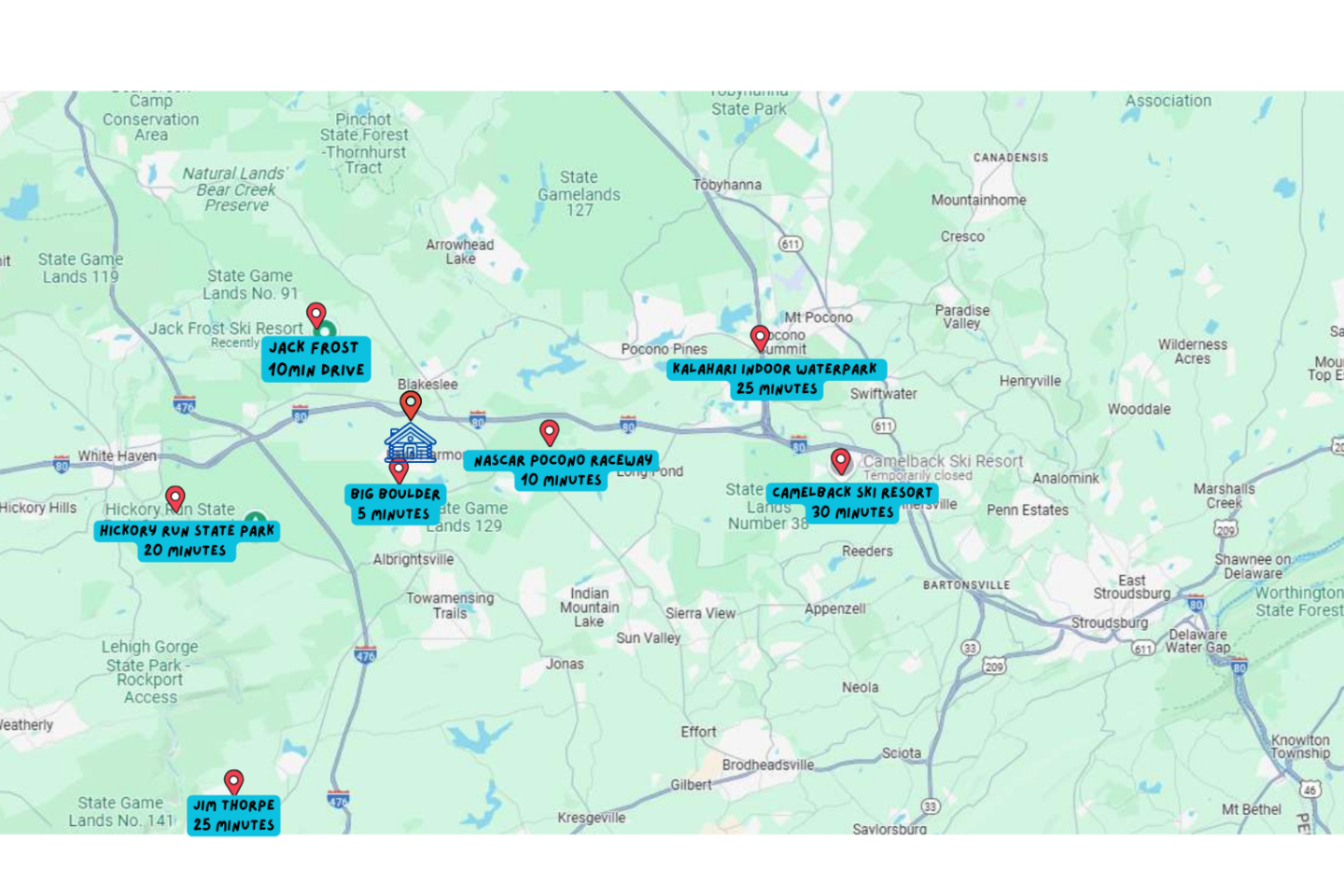 🐾 PETS WELCOME We’re happy to host your furry friends! Well-behaved small dogs (under 40 lbs) are welcome. Unfortunately, cats are not permitted due to allergy concerns. Pet Fee: $150 for the first pet, $75 each for the second and third. Please include all pets in your reservation details to avoid additional charges. 🫧 HOT TUB Free to use and perfect for relaxing after a long day of exploring! Please note that the hot tub is not heated continuously and may take time to reach your desired temperature. Guests use the hot tub at their own risk. 🎥 SECURITY CAMERAS There are three exterior cameras located at the home’s entry points. These record motion and sound for safety and security but do not face the hot tub or any private areas. 🎟️ EXCLUSIVE GUEST PERK — GREAT WOLF LODGE DISCOUNT! We’ve partnered with Great Wolf Lodge Pocono Mountains to offer our guests 25% off waterpark day passes! Details and your private discount code will be shared a few days before check-in — a fun and family-friendly way to enhance your Poconos stay. 🏠 HOUSE RULES No parties, large gatherings, loud music, or fireworks (fees apply). Primary guest must be 25 years or older to book. Minors must be accompanied by a parent or guardian. Maximum occupancy: 10 guests (6 adults max due to sleeping arrangements). Exceeding this limit may result in a $50 per unregistered guest, per night fee. No smoking or vaping indoors or on the property ($750 fee for violations). 🌊 COMMUNITY NOTE This home is located near Lake Harmony, within the Split Rock Resort area. While there is no private beach access included, guests can explore nearby public lake areas and local rentals for kayaks, paddleboards, and boats. Lake Harmony Season: Open Memorial Day through Labor Day (weather permitting) Typical Hours: Sun–Thu 10am–6pm | Fri–Sat 10am–8pm Fishing allowed with a valid PA fishing license (guests must bring their own gear). 🛡️ GUEST VERIFICATION Guests authorize the property manager to use a secure third-party service to verify identity and perform background checks. You’ll receive an email with verification instructions — please complete promptly and check your spam/junk folder if needed.