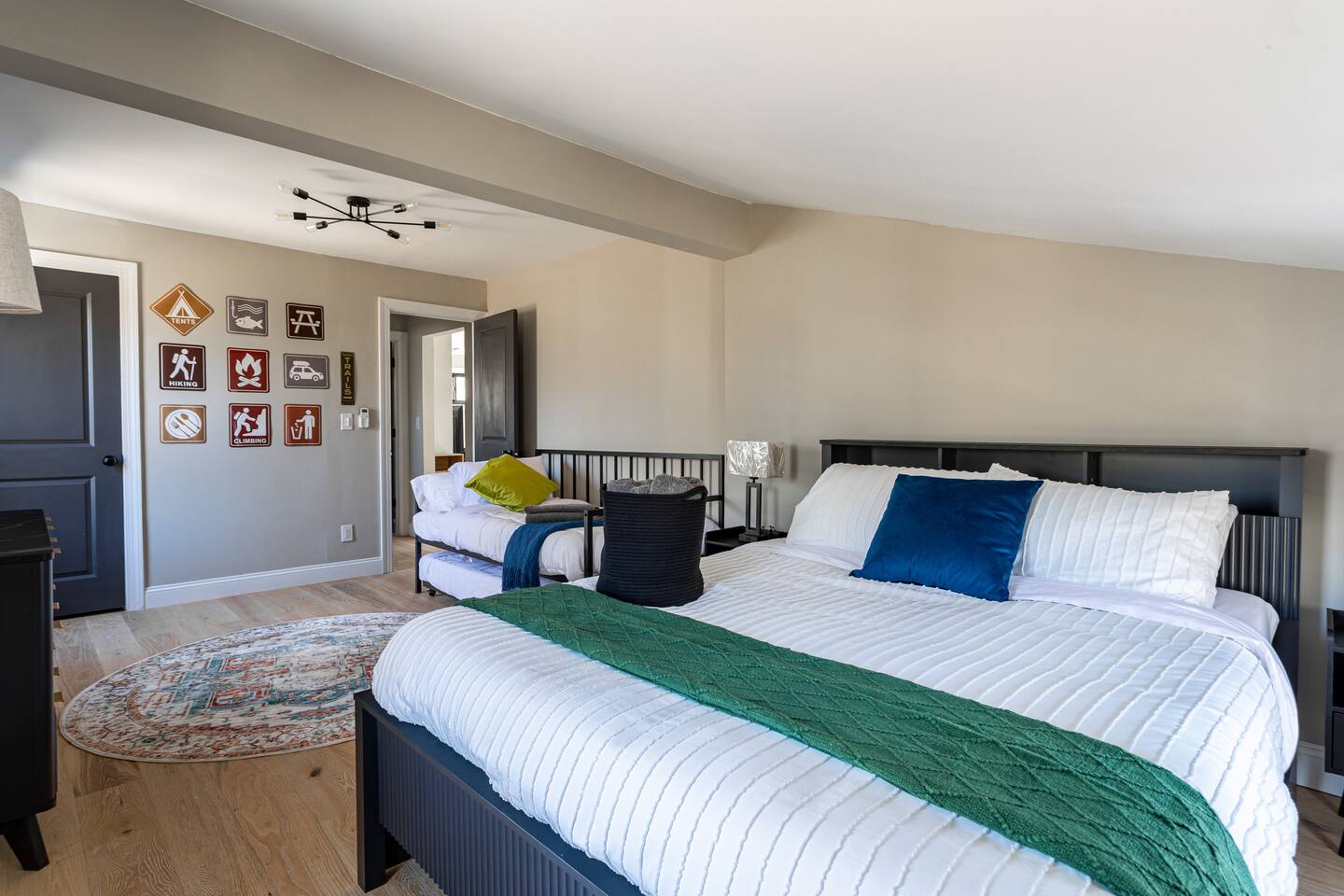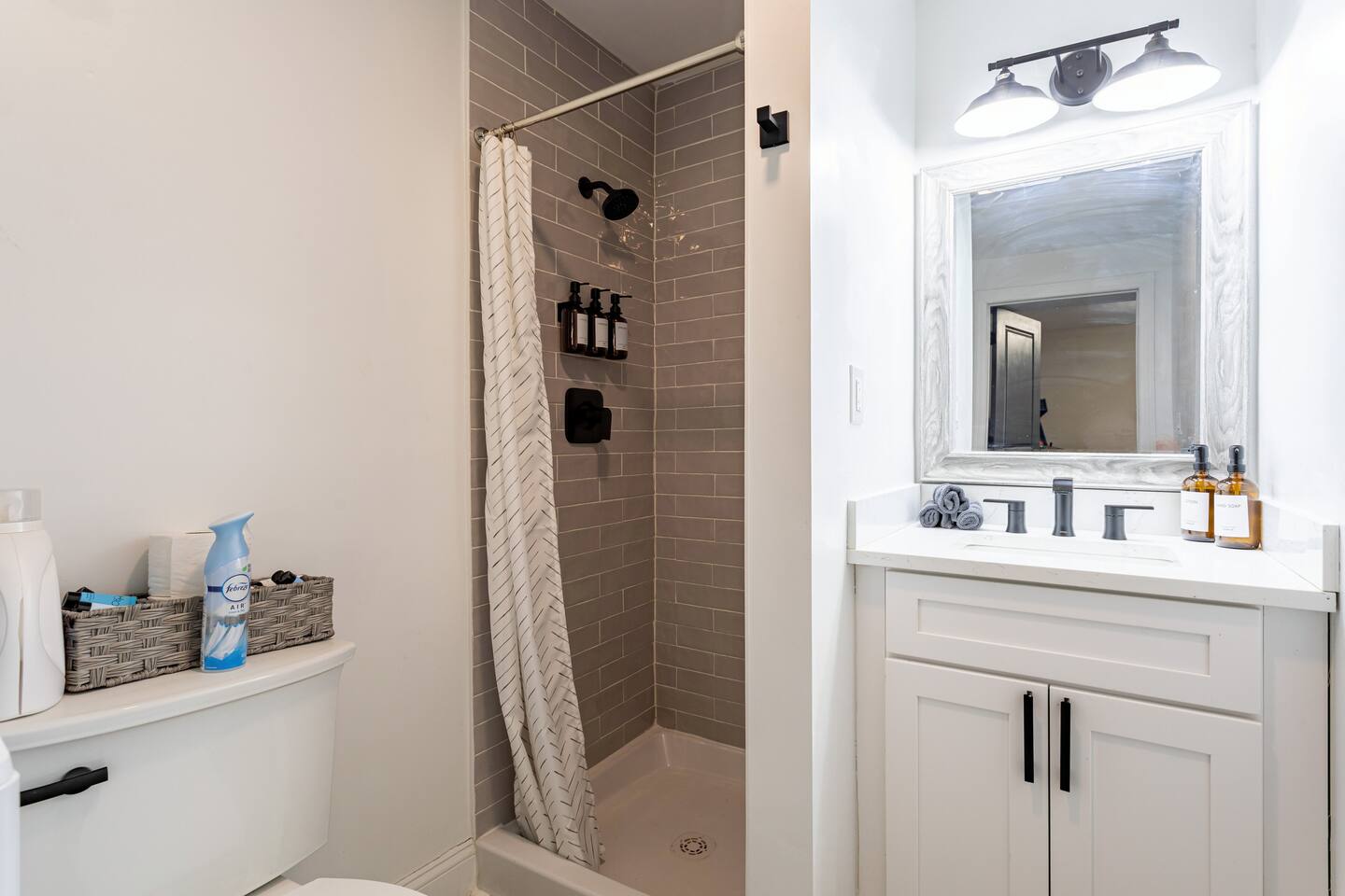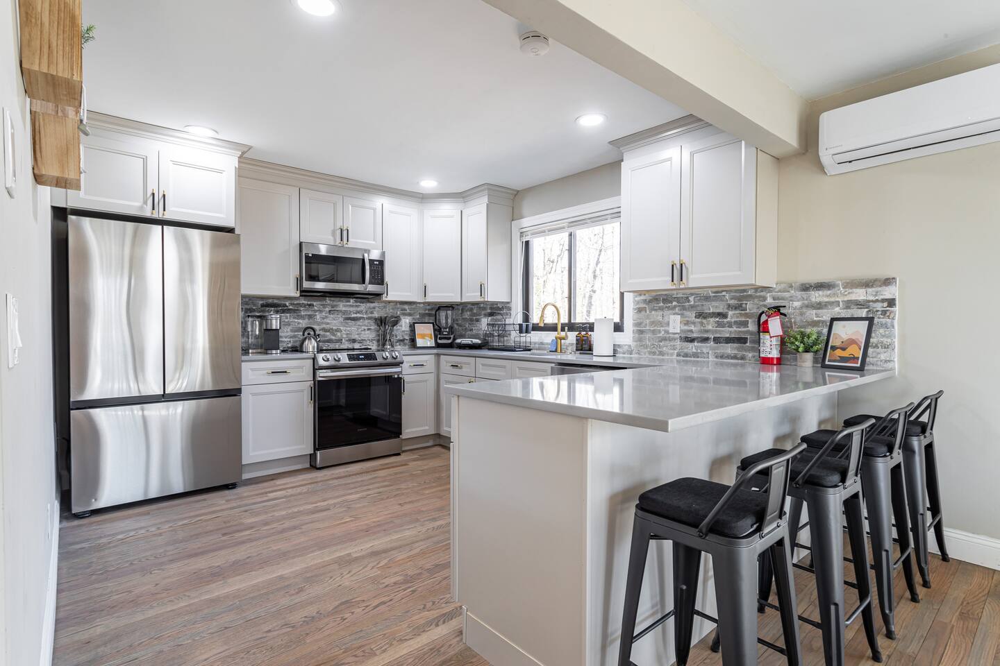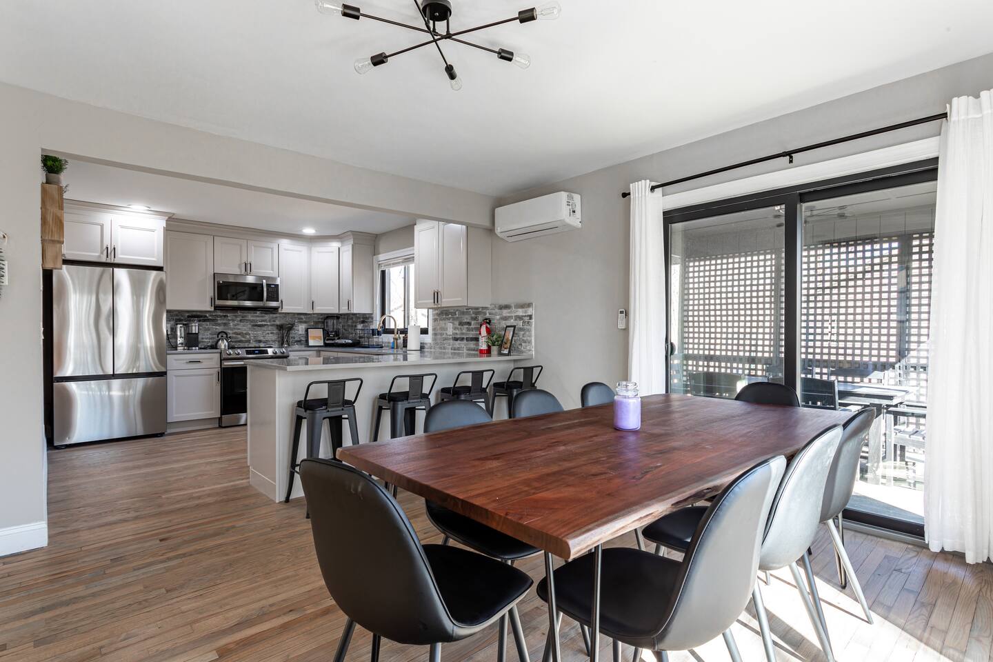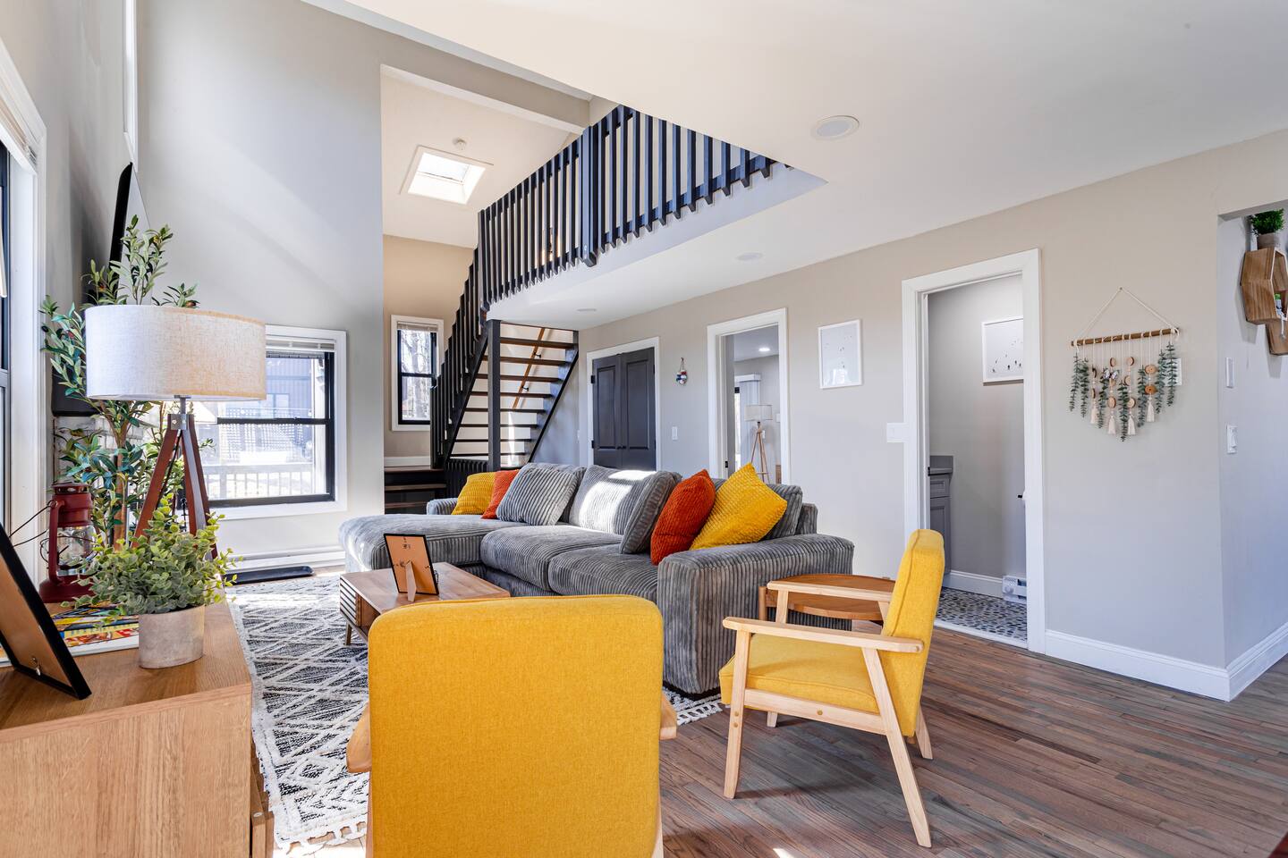 Get ready for unforgettable memories in this fun-filled mountain escape! Whether you're soaking in the hot tub, sharing laughs around the firepit, or enjoying all the nearby adventures, this home sets the stage for nonstop good times. With plenty of space, comfort, and activities for everyone, every moment—from morning coffee to late-night games—will feel special. It’s the kind of place where stories are made and no one wants to leave. -15 min to Downtown East Stroudsburg -15 min to Camelback Ski Resort -15 min to Premium Outlets -18 min to closest winery -20 min to Delaware Water Gap -25 min to Kalahari Resorts -28 min to Shawnee Mountain KEY FEATURES: *Sleeps 10 guests, 3 bedrooms; 3 Queen, 2 Twin + 1 pull out couch beds *3.5 Bathrooms *Dog Friendly *Modern and well-equipped kitchen *game room, ping pong table, shuffleboard + arcade machine *indoor fireplace *hot tub *fire pit **BEDROOMS** The main-floor bedroom is a serene retreat tucked just off the heart of the home, featuring a plush queen bed, a cozy sofa for reading or relaxing, and direct access to the backyard hot tub area as well as a beautifully renovated en-suite bathroom with sleek finishes and a spa-like shower—ideal for guests who prefer more privacy. Upstairs, you'll find two inviting bedrooms connected by a spacious, lofted living area that’s perfect for quiet mornings or late-night chats. One of the bedrooms is thoughtfully designed with both comfort and flexibility in mind, offering a queen bed and a twin daybed with a hidden trundle—perfect for kids, teens, or extra guests. The second upstairs bedroom is warm and welcoming, anchored by a queen bed and bathed in natural light. Each bedroom features its own heating and AC controls, ample closet space, and a dresser to make everyone feel right at home. The lofted living room also features a pull-out couch, offering an additional sleeping option for two more guests without sacrificing comfort. Whether it’s extra room for a large group or a cozy spot for a movie night, this space adds versatility to your stay. **BATHROOMS** Each bathroom in this home is thoughtfully designed to blend style and comfort, ensuring every guest enjoys a refreshing and convenient experience. On the main level, just off the living room, a modern rustic half-bath exudes charm with its warm wooden wall feature, creating a cozy spa-like feel that perfectly complements the home’s natural surroundings. Steps away, the en-suite bathroom in the main-floor bedroom is a true retreat, newly renovated with striking deep green tiles that add a touch of sophistication. A sleek walk-in shower with modern fixtures completes the space, offering a spa-like experience. Upstairs, nestled between the two bedrooms, the second-floor bathroom features contemporary finishes and a full bathtub—ideal for getting the kids ready for bed after a day of outdoor adventures. Soft lighting and elegant design make it a peaceful sanctuary for winding down. Finally, on the lower level, near the lively game room, the basement bathroom provides both function and convenience. Featuring a stand-up shower, it’s perfect for rinsing off after an active day, while the nearby washer and dryer add extra practicality for longer stays. Whether rustic or refined, each bathroom in this home is designed to provide both comfort and style. **LIVING ROOM, KITCHEN + DINING ROOM** As you enter this inviting home, the expansive open-concept living space immediately captures your attention. The living room boasts soaring high ceilings, a modern fireplace, and stylish, comfortable furniture, including a large sofa and smart TV, creating a cozy yet grand atmosphere. To your left, stairs lead up to the lofted living room area, offering a quiet retreat with a view of the main floor. The living room flows seamlessly into the newly renovated kitchen and dining area, designed for both function and style. The chef’s kitchen is fully equipped with top-of-the-line appliances, perfect for any meal, while the dining area features a wooden table with seating for eight and additional seating at the kitchen peninsula. Just off the dining room, glass doors open to an outdoor dining area with privacy covers, offering a peaceful spot to enjoy meals in nature. This space is perfect for gathering, relaxing, and creating lasting memories. **GAME ROOM** Downstairs, the game room offers the perfect blend of fun and relaxation, making it an ideal spot for guests of all ages. The space is filled with excitement, featuring a ping pong table and a shuffleboard for friendly competition. For those nostalgic for classic games, the arcade game adds a playful touch, while a large TV and cozy lounging area invite you to relax between rounds. A collection of board games is also available, providing endless options for entertainment. Whether you're gearing up for a game night or simply unwinding after a day of adventure, this lively and inviting room promises hours of enjoyment. **OUTDOOR AREA** Step outside to a beautifully landscaped outdoor haven, designed for both relaxation and fun. The space is bathed in the warm glow of string lights that twinkle overhead, creating an enchanting atmosphere as dusk falls. At the heart of the outdoor area is a modern firepit, surrounded by six cozy Adirondack chairs, perfect for gathering around the flames and sharing stories under the stars. Just a few steps away, a newly installed hot tub awaits, offering a soothing escape for up to six guests, where you can unwind and soak in the serene surroundings. For added entertainment, a designated area for outdoor games like cornhole ensures there's always something to do. Whether you're enjoying a peaceful evening by the fire or a lively game with friends, this outdoor retreat is the perfect place to enjoy your family and friends. **COMMUNITY AMENITIES** The community offers a range of recreational facilities, including swimming pools, tennis and basketball courts, and playgrounds, 