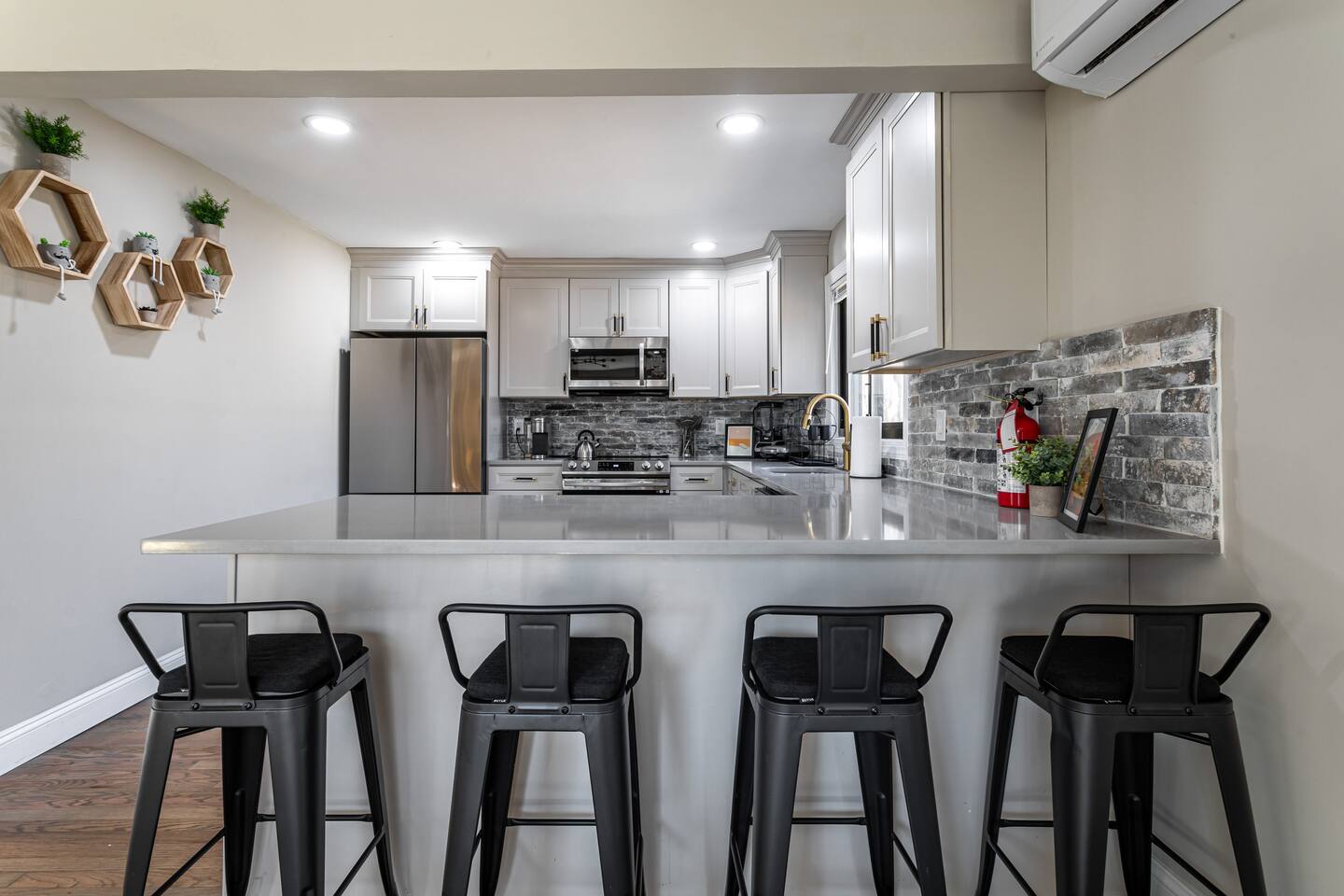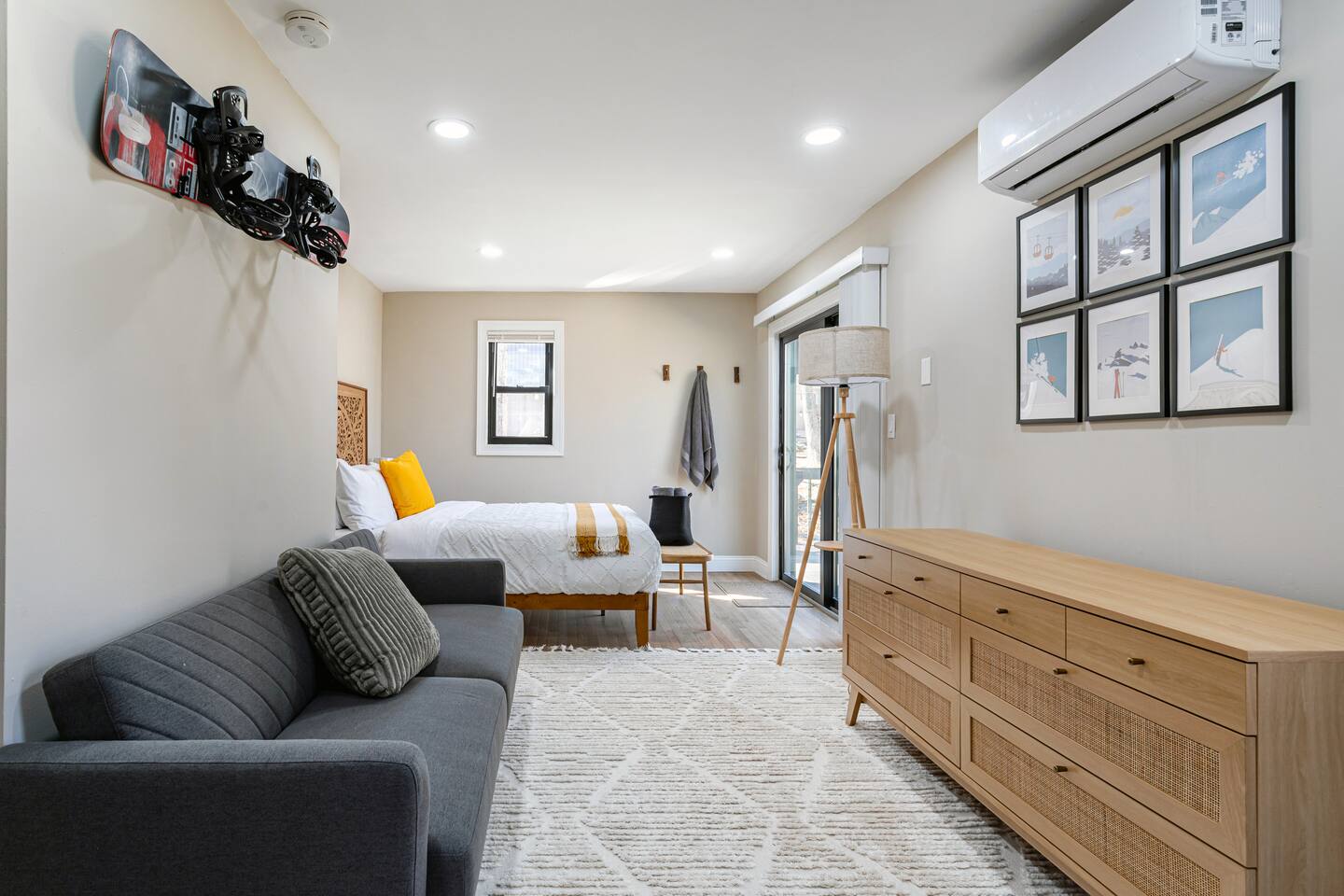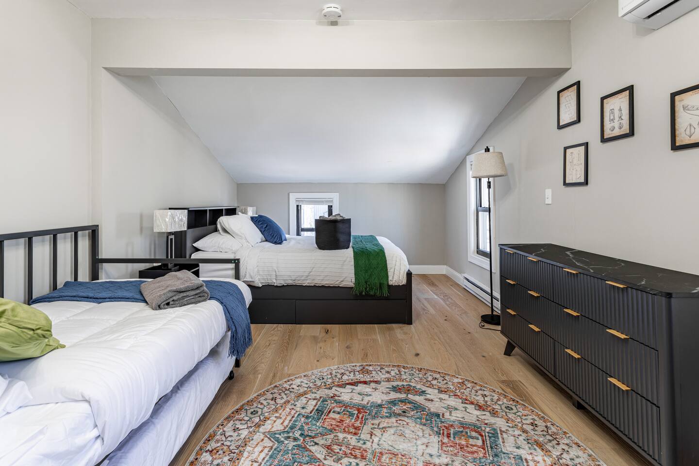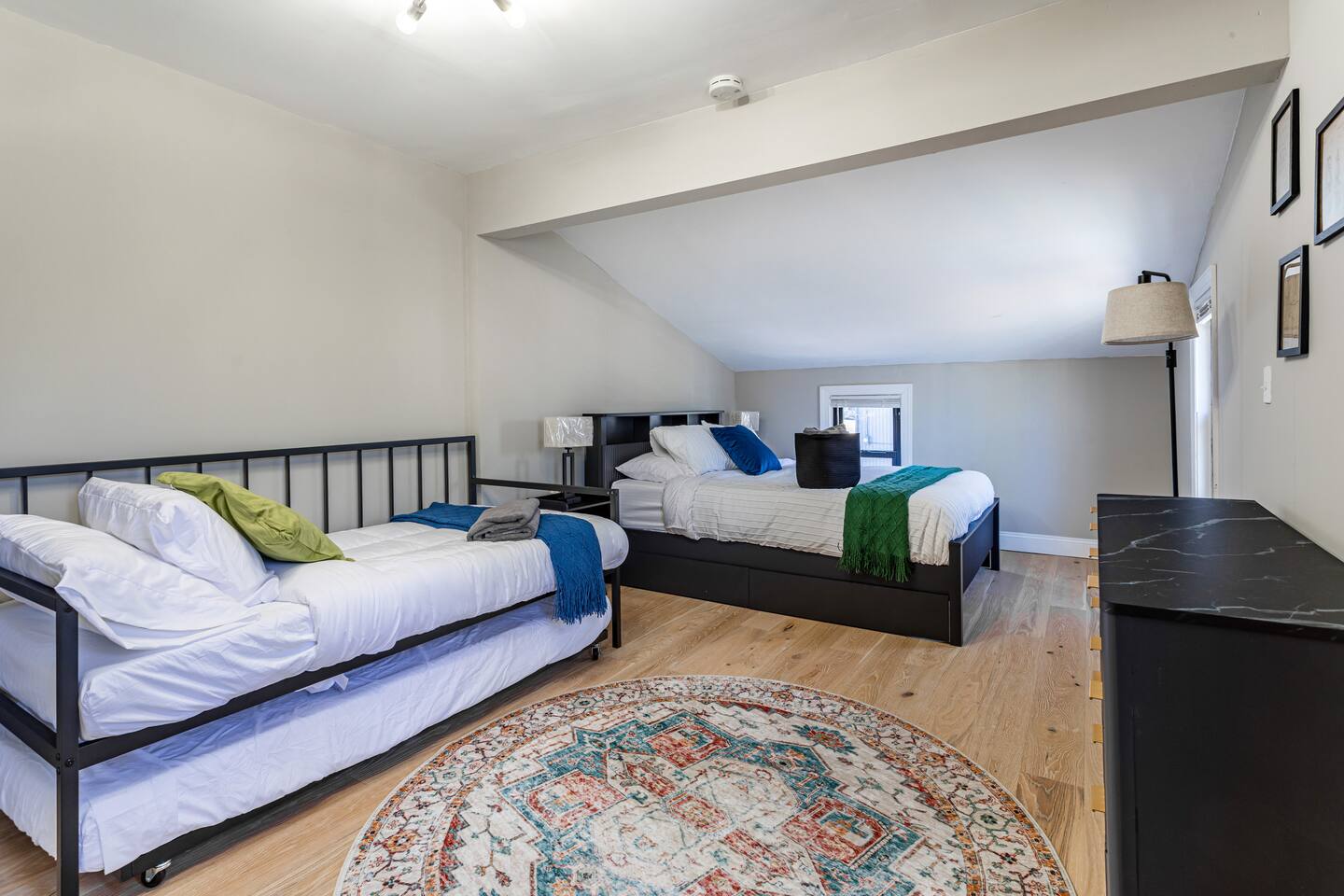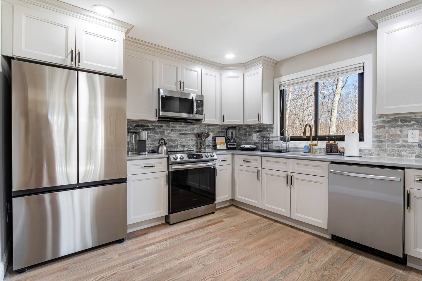 Get ready for unforgettable memories in this fun-filled mountain escape! Whether you're soaking in the hot tub, sharing laughs around the firepit, or enjoying all the nearby adventures, this home sets the stage for nonstop good times. With plenty of space, comfort, and activities for everyone, every moment—from morning coffee to late-night games—will feel special. It’s the kind of place where stories are made and no one wants to leave. -15 min to Downtown East Stroudsburg -15 min to Camelback Ski Resort -15 min to Premium Outlets -18 min to closest winery -20 min to Delaware Water Gap -25 min to Kalahari Resorts -28 min to Shawnee Mountain KEY FEATURES: *Sleeps 10 guests, 3 bedrooms; 3 Queen, 2 Twin + 1 pull out couch beds *3.5 Bathrooms *Dog Friendly *Modern and well-equipped kitchen *game room, ping pong table, shuffleboard + arcade machine *indoor fireplace *hot tub *fire pit **BEDROOMS** The main-floor bedroom is a serene retreat tucked just off the heart of the home, featuring a plush queen bed, a cozy sofa for reading or relaxing, and direct access to the backyard hot tub area as well as a beautifully renovated en-suite bathroom with sleek finishes and a spa-like shower—ideal for guests who prefer more privacy. Upstairs, you'll find two inviting bedrooms connected by a spacious, lofted living area that’s perfect for quiet mornings or late-night chats. One of the bedrooms is thoughtfully designed with both comfort and flexibility in mind, offering a queen bed and a twin daybed with a hidden trundle—perfect for kids, teens, or extra guests. The second upstairs bedroom is warm and welcoming, anchored by a queen bed and bathed in natural light. Each bedroom features its own heating and AC controls, ample closet space, and a dresser to make everyone feel right at home. The lofted living room also features a pull-out couch, offering an additional sleeping option for two more guests without sacrificing comfort. Whether it’s extra room for a large group or a cozy spot for a movie night, this space adds versatility to your stay. **BATHROOMS** Each bathroom in this home is thoughtfully designed to blend style and comfort, ensuring every guest enjoys a refreshing and convenient experience. On the main level, just off the living room, a modern rustic half-bath exudes charm with its warm wooden wall feature, creating a cozy spa-like feel that perfectly complements the home’s natural surroundings. Steps away, the en-suite bathroom in the main-floor bedroom is a true retreat, newly renovated with striking deep green tiles that add a touch of sophistication. A sleek walk-in shower with modern fixtures completes the space, offering a spa-like experience. Upstairs, nestled between the two bedrooms, the second-floor bathroom features contemporary finishes and a full bathtub—ideal for getting the kids ready for bed after a day of outdoor adventures. Soft lighting and elegant design make it a peaceful sanctuary for winding down. Finally, on the lower level, near the lively game room, the basement bathroom provides both function and convenience. Featuring a stand-up shower, it’s perfect for rinsing off after an active day, while the nearby washer and dryer add extra practicality for longer stays. Whether rustic or refined, each bathroom in this home is designed to provide both comfort and style. **LIVING ROOM, KITCHEN + DINING ROOM** As you enter this inviting home, the expansive open-concept living space immediately captures your attention. The living room boasts soaring high ceilings, a modern fireplace, and stylish, comfortable furniture, including a large sofa and smart TV, creating a cozy yet grand atmosphere. To your left, stairs lead up to the lofted living room area, offering a quiet retreat with a view of the main floor. The living room flows seamlessly into the newly renovated kitchen and dining area, designed for both function and style. The chef’s kitchen is fully equipped with top-of-the-line appliances, perfect for any meal, while the dining area features a wooden table with seating for eight and additional seating at the kitchen peninsula. Just off the dining room, glass doors open to an outdoor dining area with privacy covers, offering a peaceful spot to enjoy meals in nature. This space is perfect for gathering, relaxing, and creating lasting memories. **GAME ROOM** Downstairs, the game room offers the perfect blend of fun and relaxation, making it an ideal spot for guests of all ages. The space is filled with excitement, featuring a ping pong table and a shuffleboard for friendly competition. For those nostalgic for classic games, the arcade game adds a playful touch, while a large TV and cozy lounging area invite you to relax between rounds. A collection of board games is also available, providing endless options for entertainment. Whether you're gearing up for a game night or simply unwinding after a day of adventure, this lively and inviting room promises hours of enjoyment. **OUTDOOR AREA** Step outside to a beautifully landscaped outdoor haven, designed for both relaxation and fun. The space is bathed in the warm glow of string lights that twinkle overhead, creating an enchanting atmosphere as dusk falls. At the heart of the outdoor area is a modern firepit, surrounded by six cozy Adirondack chairs, perfect for gathering around the flames and sharing stories under the stars. Just a few steps away, a newly installed hot tub awaits, offering a soothing escape for up to six guests, where you can unwind and soak in the serene surroundings. For added entertainment, a designated area for outdoor games like cornhole ensures there's always something to do. Whether you're enjoying a peaceful evening by the fire or a lively game with friends, this outdoor retreat is the perfect place to enjoy your family and friends. **COMMUNITY AMENITIES** The community offers a range of recreational facilities, including swimming pools, tennis and basketball courts, and playgrounds, 