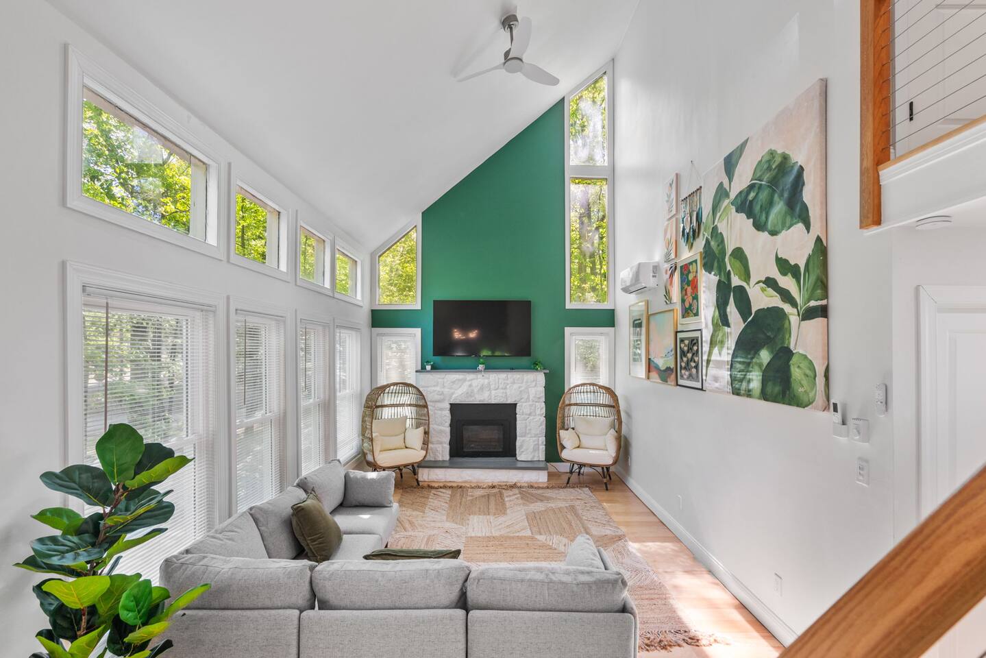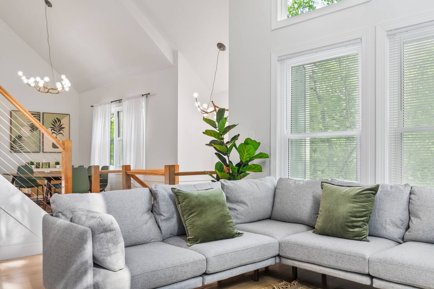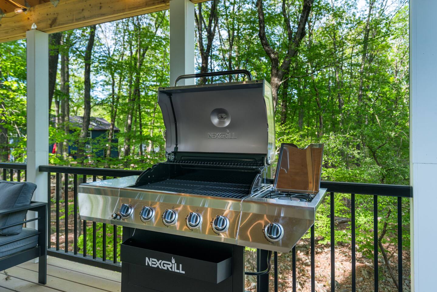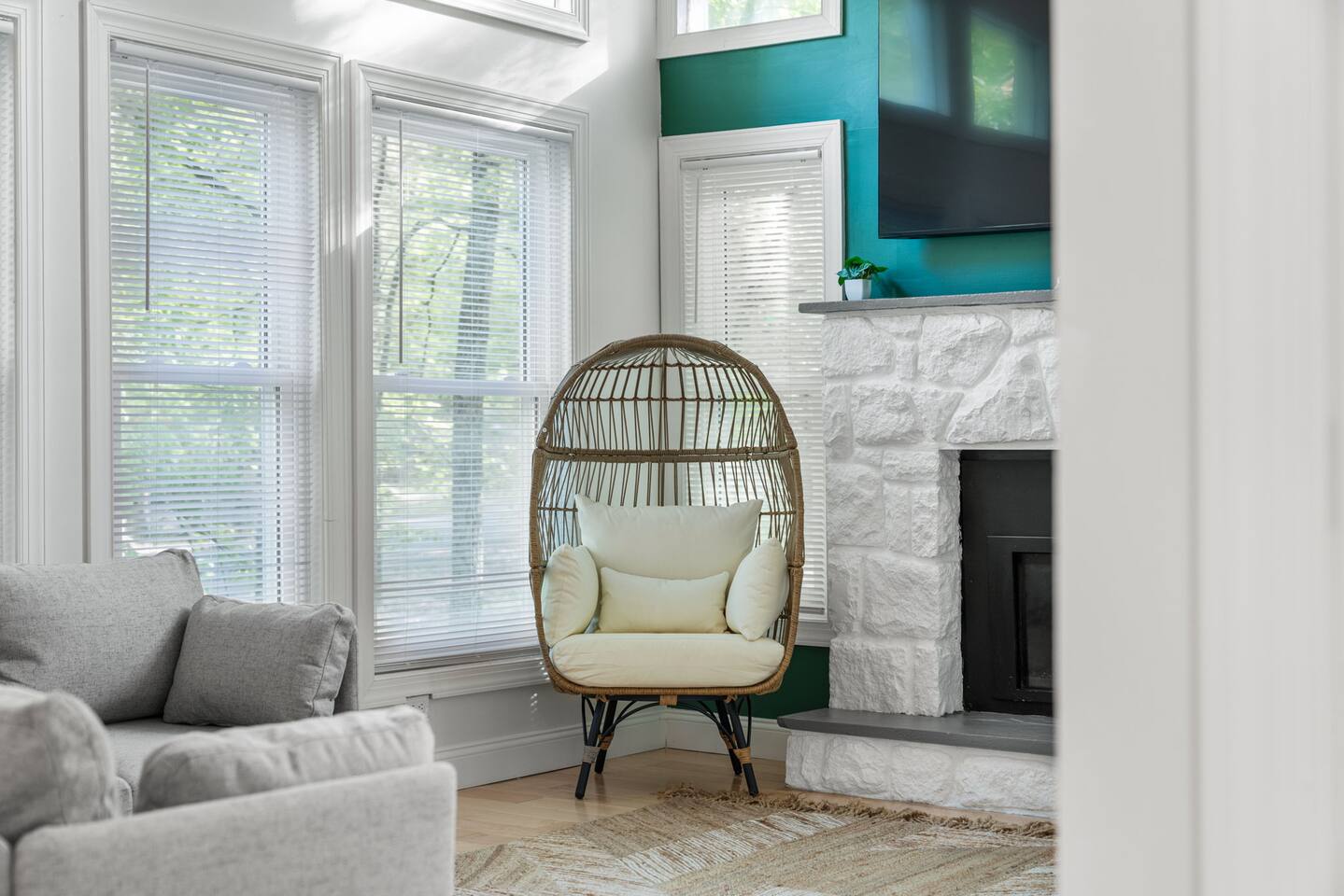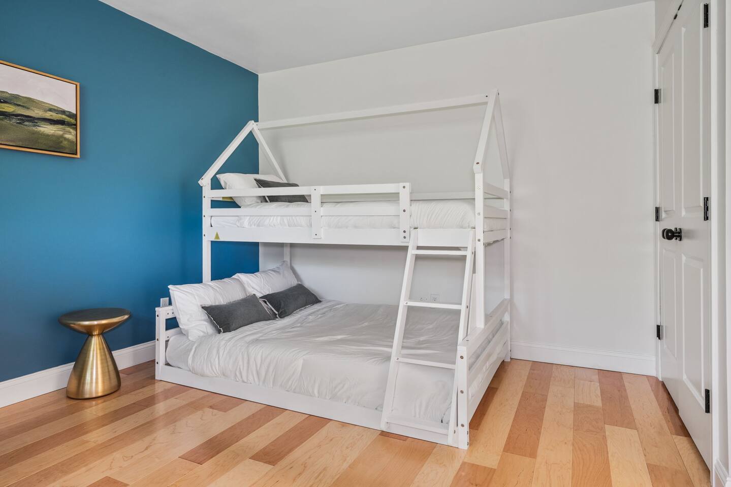 Get ready for unforgettable memories! Whether you're soaking in the hot tub under the stars, sharing stories around the firepit, or enjoying game nights and home-cooked meals, this home is made for laughter, connection, and relaxation. With space for everyone and something for all ages, your stay will be filled with fun, comfort, and the perfect mix of adventure and downtime. -15 min to Downtown East Stroudsburg -15 min to Camelback Ski Resort -15 min to Premium Outlets -18 min to closest winery -20 min to Delaware Water Gap -25 min to Kalahari Resorts -28 min to Shawnee Mountain KEY FEATURES: *Sleeps 12 guests, 4 bedrooms; 2 King, 1 Queen, 2 sets of bunk beds (each with twin and full) *3 Bathrooms *Dog Friendly *Modern and well-equipped kitchen *game room, pool table + arcade machine *covered outside lounge area *indoor gas fireplace *hot tub *fire pit **BEDROOMS** This spacious home offers four beautifully appointed bedrooms across three levels, each thoughtfully designed for comfort and relaxation. On the main floor, just off the game room, you'll find a cozy retreat with a queen bed, sliding glass doors to head outside and generous closet space, perfect for guests seeking a quiet corner to unwind. Upstairs, directly off the kitchen, a serene bedroom features a plush king-size bed and a large closet, offering a restful haven with easy access to the heart of the home. The top floor is ideal for families or larger groups. To the right, a fun-filled kids' room includes two sets of bunk beds—each with twin and full-size mattresses—creating the ultimate sleepover space. Across the hall, the final bedroom offers another luxurious king-size bed and a spacious closet, completing this home’s perfect blend of function, comfort, and style. **BATHROOMS** Each of the three bathrooms in this home has been thoughtfully designed with both style and comfort in mind. On the main level, near the game room, you’ll find a beautifully renovated full bathroom that exudes a spa-like ambiance, complete with a sleek walk-in shower, modern fixtures, and calming finishes—perfect for refreshing after a day of adventure. Up on the second floor, just off the kitchen, a vibrant bathroom features a walk-in shower and eye-catching patterned floor tile that adds a playful yet polished touch to the space. It’s as functional as it is stylish, offering easy access for guests on the main living level. The third-floor bathroom is ideal for families, featuring a spacious tub perfect for little ones or a relaxing soak, along with a double vanity set against a striking green tile accent wall. The thoughtful layout and bold yet elegant finishes make it a standout feature of the home, providing both beauty and convenience on every level. **LIVING ROOM, KITCHEN + DINING ROOM** As you ascend the stairs from the lower level, you’re welcomed into an open-concept main floor that effortlessly blends style, comfort, and functionality. Straight ahead, another staircase leads to the third floor, while to your left, the expansive living room draws you in with its soaring ceilings and walls of windows that flood the space with natural light. A sleek gas fireplace anchors the room, surrounded by a plush sectional and trendy egg chairs that invite you to relax and unwind. The space is artfully accented by a vibrant gallery wall that brings warmth and personality through a curated mix of color and creativity. To the right of the stairs, the flow continues into the newly renovated dining and kitchen areas. The dining room is a true gathering place, featuring a large wooden table with seating for ten—eight chairs and a long bench—ideal for shared meals and lively conversation. Just beyond, the modern kitchen is a dream for any cook, with beautiful green cabinetry, open shelving, and a spacious island perfect for prepping or casual bites. Thoughtfully stocked and fully equipped, it has everything needed to make meals feel effortless. Sliding glass doors open from both the dining and kitchen areas to a covered outdoor lounge space—an idyllic spot to sip your morning coffee, breathe in the fresh Poconos air, and soak in the peaceful surroundings. **GAME ROOM** Step into the home and you’re immediately greeted by the vibrant and inviting game room—a perfect kickoff to your getaway. This lively space is designed for fun and connection, featuring a full-size pool table at its center and a classic arcade game that adds a nostalgic touch. A cozy lounging area with a TV offers a great spot to unwind or watch the big game, while shelves stocked with board games ensure entertainment for all ages. The room’s standout feature is a striking mountain-inspired accent wall, complete with a glowing neon sign that reads “Stay Wild,” setting the tone for your stay with playful, adventurous energy. Just off this space, a separate laundry room with a washer and dryer adds extra convenience, especially for longer stays. Whether you're starting your day with a game of pool or winding down with a family movie night, this game room is your home’s ultimate hangout hub. **OUTDOOR AREA** Tucked along the side of the home, the outdoor area is a cozy, beautifully designed escape that invites you to relax and reconnect. At its heart is a firepit surrounded by comfortable seating—perfect for gathering with family and friends under the stars, toasting marshmallows, or sharing stories late into the night. Just steps away, a private hot tub awaits, offering room for up to six guests to soak, unwind, and take in the crisp mountain air. Please note towels are not supplied for the hot tub so please bring your own if you wish to use the hot tub. String lights are thoughtfully wrapped around the space, casting a soft glow that transforms the area into a magical retreat as the sun sets. Whether you're enjoying a peaceful morning coffee or ending the day with a soak and a glass of wine, this outdoor haven is designed for unforgettable moments in every s