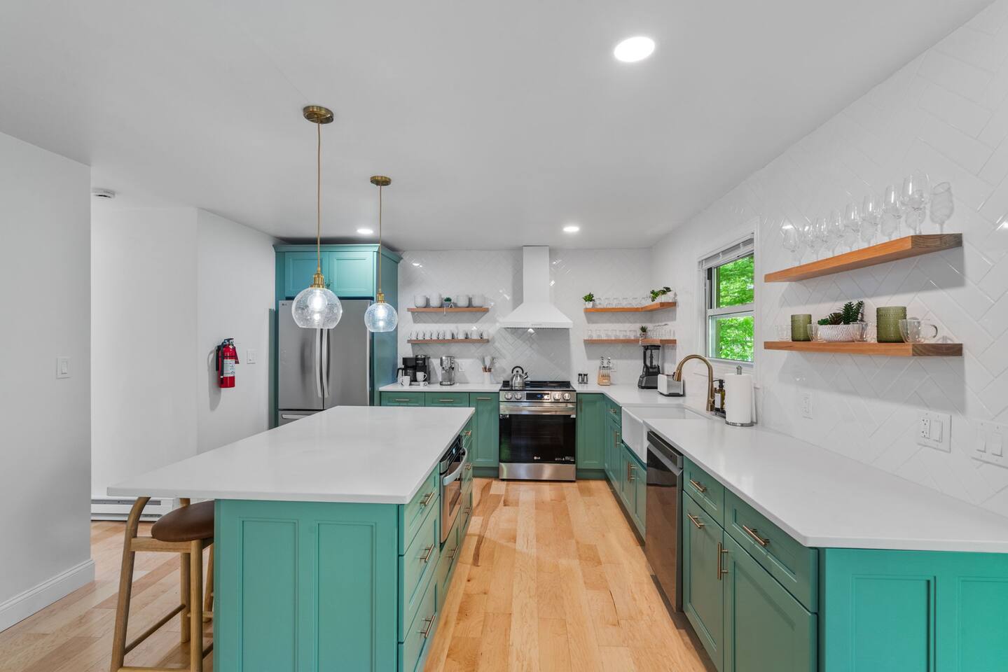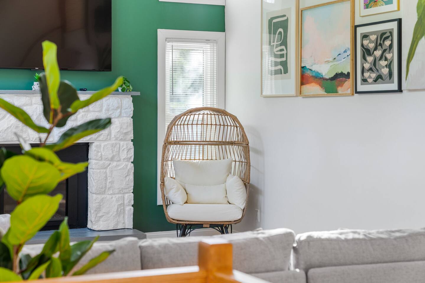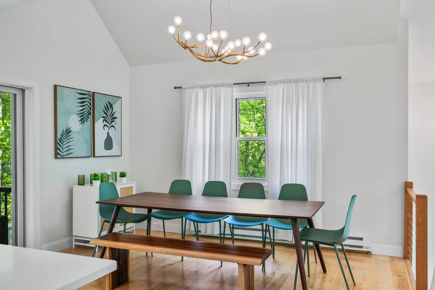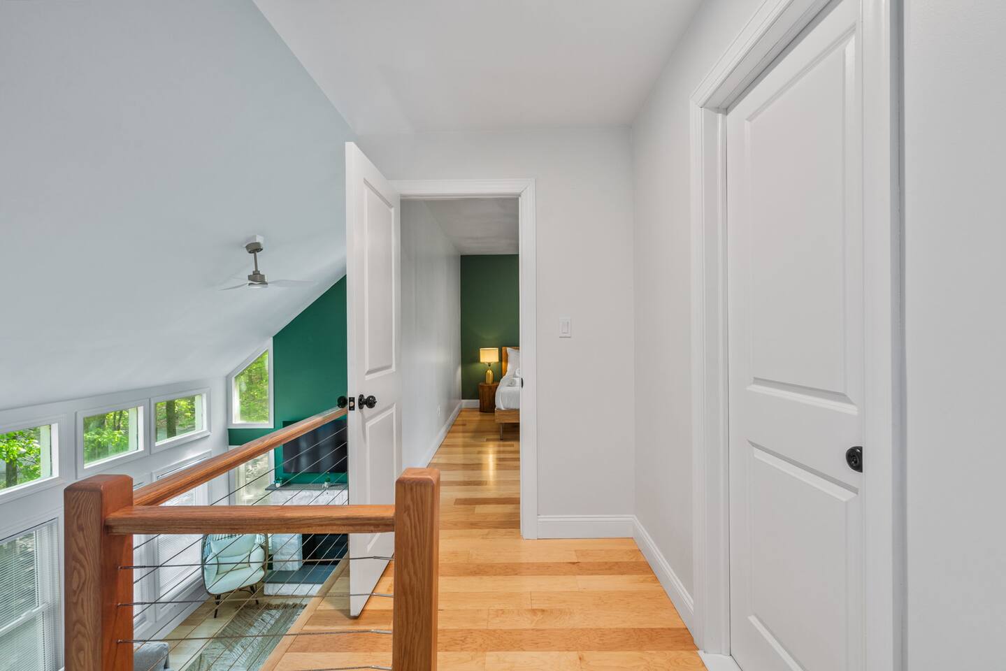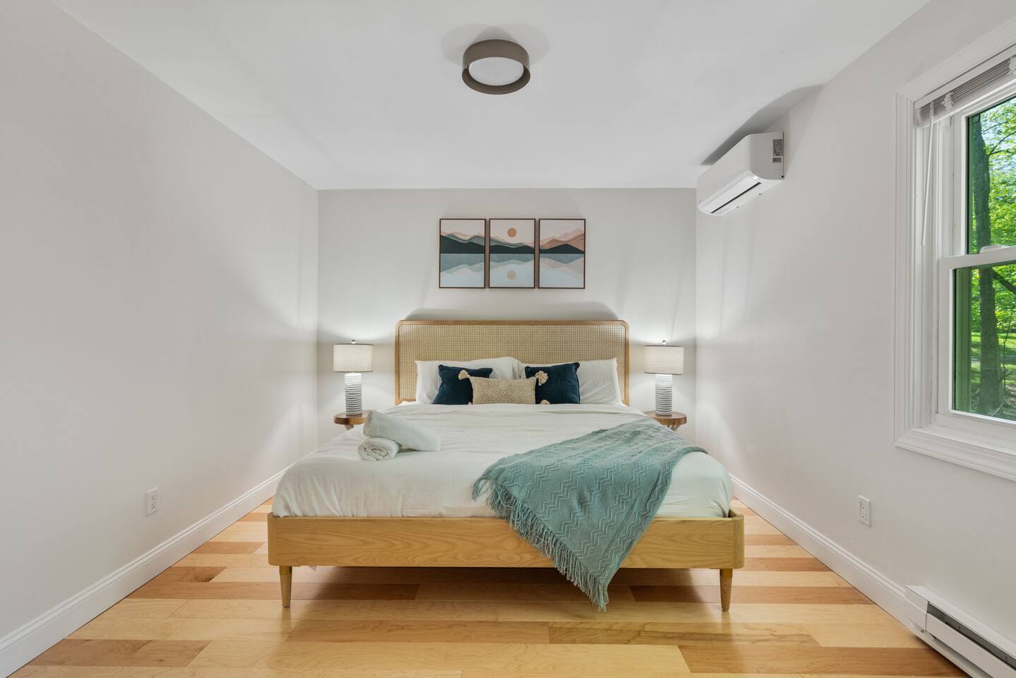 Get ready for unforgettable memories! Whether you're soaking in the hot tub under the stars, sharing stories around the firepit, or enjoying game nights and home-cooked meals, this home is made for laughter, connection, and relaxation. With space for everyone and something for all ages, your stay will be filled with fun, comfort, and the perfect mix of adventure and downtime. -15 min to Downtown East Stroudsburg -15 min to Camelback Ski Resort -15 min to Premium Outlets -18 min to closest winery -20 min to Delaware Water Gap -25 min to Kalahari Resorts -28 min to Shawnee Mountain KEY FEATURES: *Sleeps 12 guests, 4 bedrooms; 2 King, 1 Queen, 2 sets of bunk beds (each with twin and full) *3 Bathrooms *Dog Friendly *Modern and well-equipped kitchen *game room, pool table + arcade machine *covered outside lounge area *indoor gas fireplace *hot tub *fire pit **BEDROOMS** This spacious home offers four beautifully appointed bedrooms across three levels, each thoughtfully designed for comfort and relaxation. On the main floor, just off the game room, you'll find a cozy retreat with a queen bed, sliding glass doors to head outside and generous closet space, perfect for guests seeking a quiet corner to unwind. Upstairs, directly off the kitchen, a serene bedroom features a plush king-size bed and a large closet, offering a restful haven with easy access to the heart of the home. The top floor is ideal for families or larger groups. To the right, a fun-filled kids' room includes two sets of bunk beds—each with twin and full-size mattresses—creating the ultimate sleepover space. Across the hall, the final bedroom offers another luxurious king-size bed and a spacious closet, completing this home’s perfect blend of function, comfort, and style. **BATHROOMS** Each of the three bathrooms in this home has been thoughtfully designed with both style and comfort in mind. On the main level, near the game room, you’ll find a beautifully renovated full bathroom that exudes a spa-like ambiance, complete with a sleek walk-in shower, modern fixtures, and calming finishes—perfect for refreshing after a day of adventure. Up on the second floor, just off the kitchen, a vibrant bathroom features a walk-in shower and eye-catching patterned floor tile that adds a playful yet polished touch to the space. It’s as functional as it is stylish, offering easy access for guests on the main living level. The third-floor bathroom is ideal for families, featuring a spacious tub perfect for little ones or a relaxing soak, along with a double vanity set against a striking green tile accent wall. The thoughtful layout and bold yet elegant finishes make it a standout feature of the home, providing both beauty and convenience on every level. **LIVING ROOM, KITCHEN + DINING ROOM** As you ascend the stairs from the lower level, you’re welcomed into an open-concept main floor that effortlessly blends style, comfort, and functionality. Straight ahead, another staircase leads to the third floor, while to your left, the expansive living room draws you in with its soaring ceilings and walls of windows that flood the space with natural light. A sleek gas fireplace anchors the room, surrounded by a plush sectional and trendy egg chairs that invite you to relax and unwind. The space is artfully accented by a vibrant gallery wall that brings warmth and personality through a curated mix of color and creativity. To the right of the stairs, the flow continues into the newly renovated dining and kitchen areas. The dining room is a true gathering place, featuring a large wooden table with seating for ten—eight chairs and a long bench—ideal for shared meals and lively conversation. Just beyond, the modern kitchen is a dream for any cook, with beautiful green cabinetry, open shelving, and a spacious island perfect for prepping or casual bites. Thoughtfully stocked and fully equipped, it has everything needed to make meals feel effortless. Sliding glass doors open from both the dining and kitchen areas to a covered outdoor lounge space—an idyllic spot to sip your morning coffee, breathe in the fresh Poconos air, and soak in the peaceful surroundings. **GAME ROOM** Step into the home and you’re immediately greeted by the vibrant and inviting game room—a perfect kickoff to your getaway. This lively space is designed for fun and connection, featuring a full-size pool table at its center and a classic arcade game that adds a nostalgic touch. A cozy lounging area with a TV offers a great spot to unwind or watch the big game, while shelves stocked with board games ensure entertainment for all ages. The room’s standout feature is a striking mountain-inspired accent wall, complete with a glowing neon sign that reads “Stay Wild,” setting the tone for your stay with playful, adventurous energy. Just off this space, a separate laundry room with a washer and dryer adds extra convenience, especially for longer stays. Whether you're starting your day with a game of pool or winding down with a family movie night, this game room is your home’s ultimate hangout hub. **OUTDOOR AREA** Tucked along the side of the home, the outdoor area is a cozy, beautifully designed escape that invites you to relax and reconnect. At its heart is a firepit surrounded by comfortable seating—perfect for gathering with family and friends under the stars, toasting marshmallows, or sharing stories late into the night. Just steps away, a private hot tub awaits, offering room for up to six guests to soak, unwind, and take in the crisp mountain air. Please note towels are not supplied for the hot tub so please bring your own if you wish to use the hot tub. String lights are thoughtfully wrapped around the space, casting a soft glow that transforms the area into a magical retreat as the sun sets. Whether you're enjoying a peaceful morning coffee or ending the day with a soak and a glass of wine, this outdoor haven is designed for unforgettable moments in every s