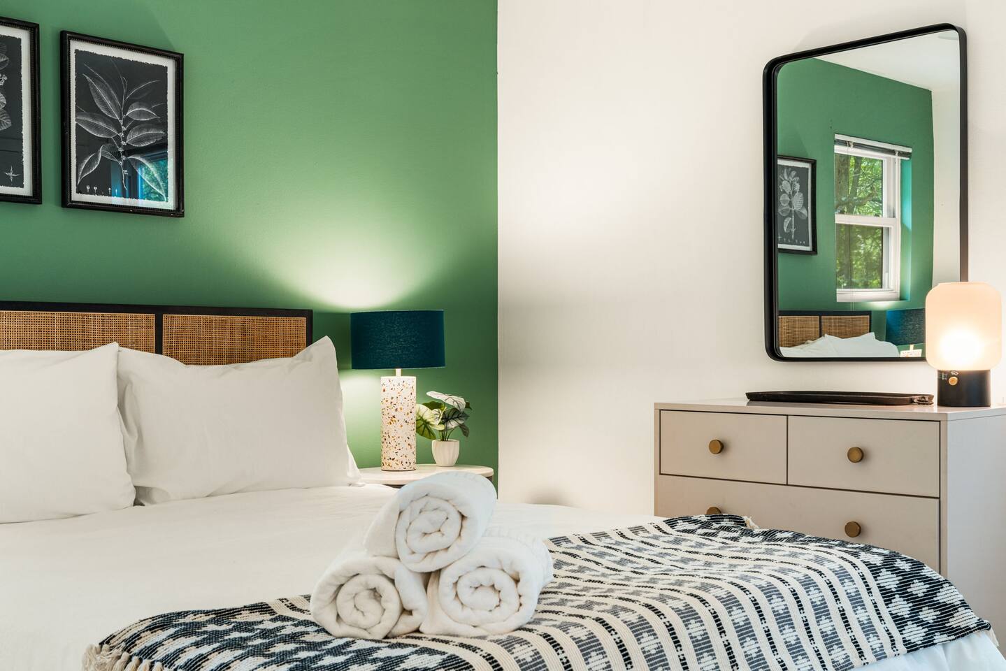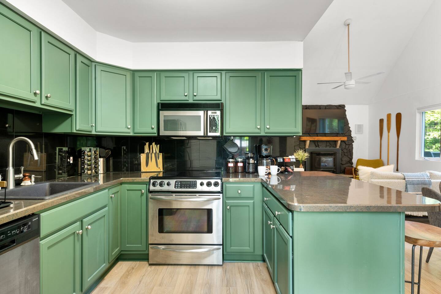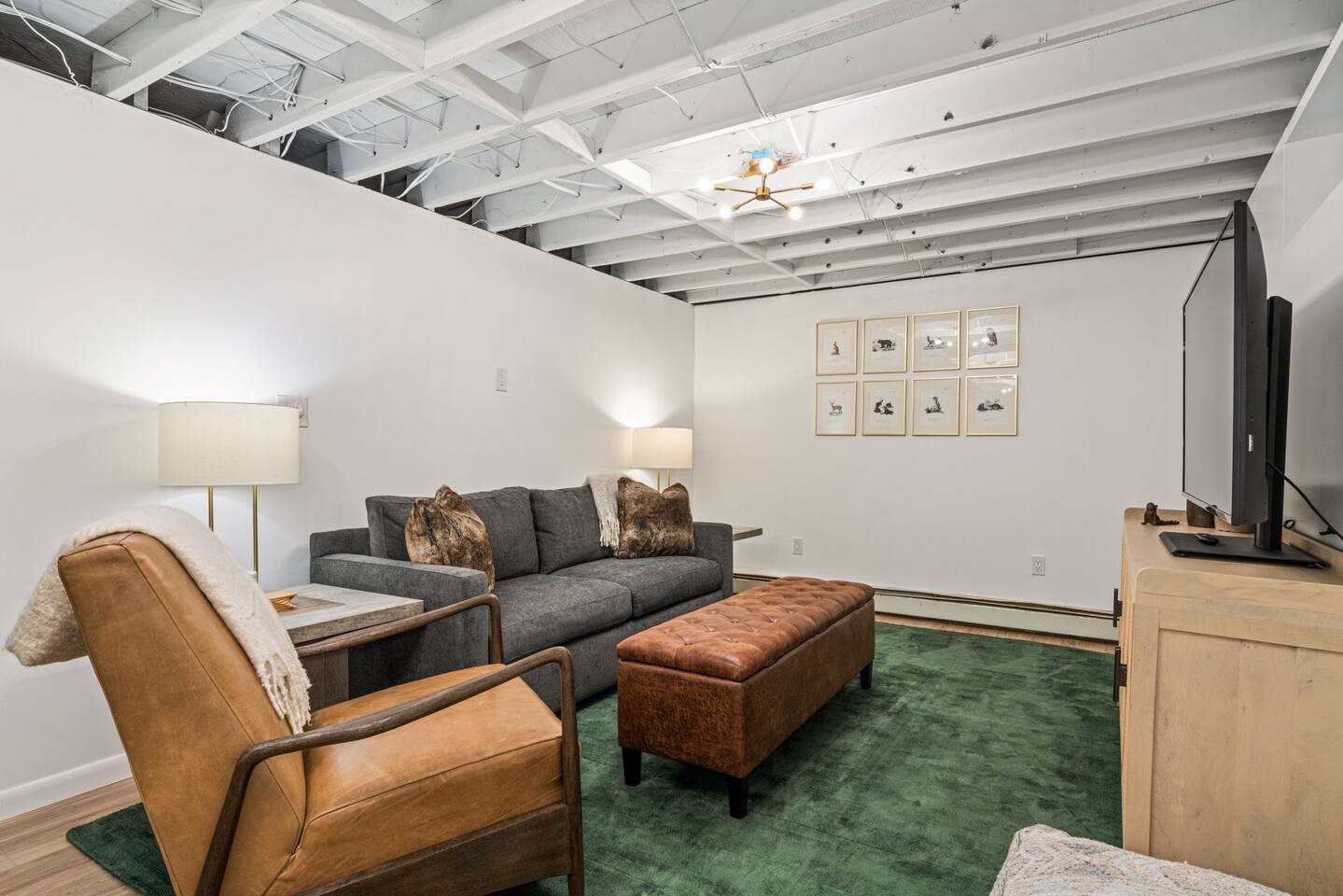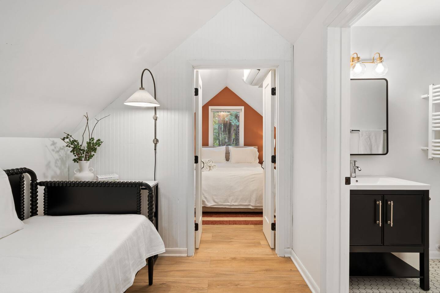 KEY FEATURES ☀ 3 beautifully styled bedrooms; each with premium queen mattresses + plush linens ☀ 2 full bathrooms with high-end finishes + essential toiletries provided ☀ Expansive wraparound deck with hot tub + forest views ☀ Cozy living area with decorative wood-burning stove + Smart TV ☀ Fully equipped kitchen with stainless steel appliances + dining for 7 ☀ Family-friendly game room with ping pong table + arcade machines ☀ Loft bedroom perfect for kids or the young at heart ☀ Free Wi-Fi, laundry area, + onsite parking for 4 vehicles BEDROOMS Designed for comfort and relaxation, each of the three bedrooms offers a cozy retreat after a day exploring the Poconos. All rooms feature queen beds with premium mattresses, soft linens, and calming natural hues that bring the serenity of the forest indoors. The loft bedroom is a guest favorite — a charming hideaway ideal for kids or a cozy reading nook. BATHROOMS The two full bathrooms are thoughtfully designed and stocked with essential toiletries, fluffy towels, and everything you’ll need to refresh after a day outdoors. One bathroom includes a shower-tub combo, while the other offers a walk-in shower for added convenience. KITCHEN & LOUNGE The heart of the cabin, our open-concept living area invites connection and comfort. Gather around the decorative wood-burning stove or settle into the plush seating for movie nights on the Smart TV. The fully equipped kitchen features new stainless-steel appliances, a drip coffee maker, toaster, and all the cookware and dinnerware needed for everyday meals. We also provide a selection of basic kitchen essentials to help get you started. Guests are welcome to bring any specialty items or ingredients they’d like to enjoy during their stay. The adjacent dining area seats four at the table plus three at the peninsula — perfect for family meals or casual breakfasts before heading out to explore the Poconos GAME ROOM Downstairs, you’ll find the ultimate entertainment space with a ping pong table, arcade machines, and a variety of classic board games — designed for guests of all ages to enjoy. OUTSIDE SPACE Step onto the expansive wraparound deck and soak in the beauty of the Poconos. Unwind in the private hot tub, fire up the grill, or gather around the fire pit for s’mores under the stars. The home also features outdoor seating and yard games, making it a perfect spot to relax or reconnect with loved ones. LOCATION Nestled just minutes from Lake Harmony, Big Boulder Ski Resort, and countless hiking and biking trails, this cabin offers the perfect balance of adventure and tranquility. Whether you’re here for skiing, boating, or simply unwinding in nature, the Midnight Mountain Cabin delivers an unforgettable stay. Book your stay at Midnight Mountain Cabin — where design meets nature and memories are made.