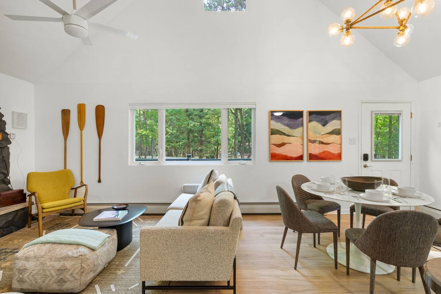 Unwind in this stylish 3-bedroom, 2-bath Poconos retreat, where mountain charm meets modern comfort. Perfect for families and groups seeking both relaxation and adventure. - Just minutes to Lake Harmony and Big Boulder Ski Resort - Surrounded by hiking trails and scenic woodlands - Features a private hot tub, fire pit, and game nook Experience the beauty of the Poconos—explore more below!